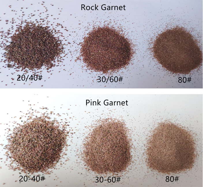 Garnet is a natural abrasive, there are many colors, like pink, amaranthine, blood red, dark red, brown red, green, black, depending on its different chemical contents. This product shows superior toughness and low friability, can be recycled many times.